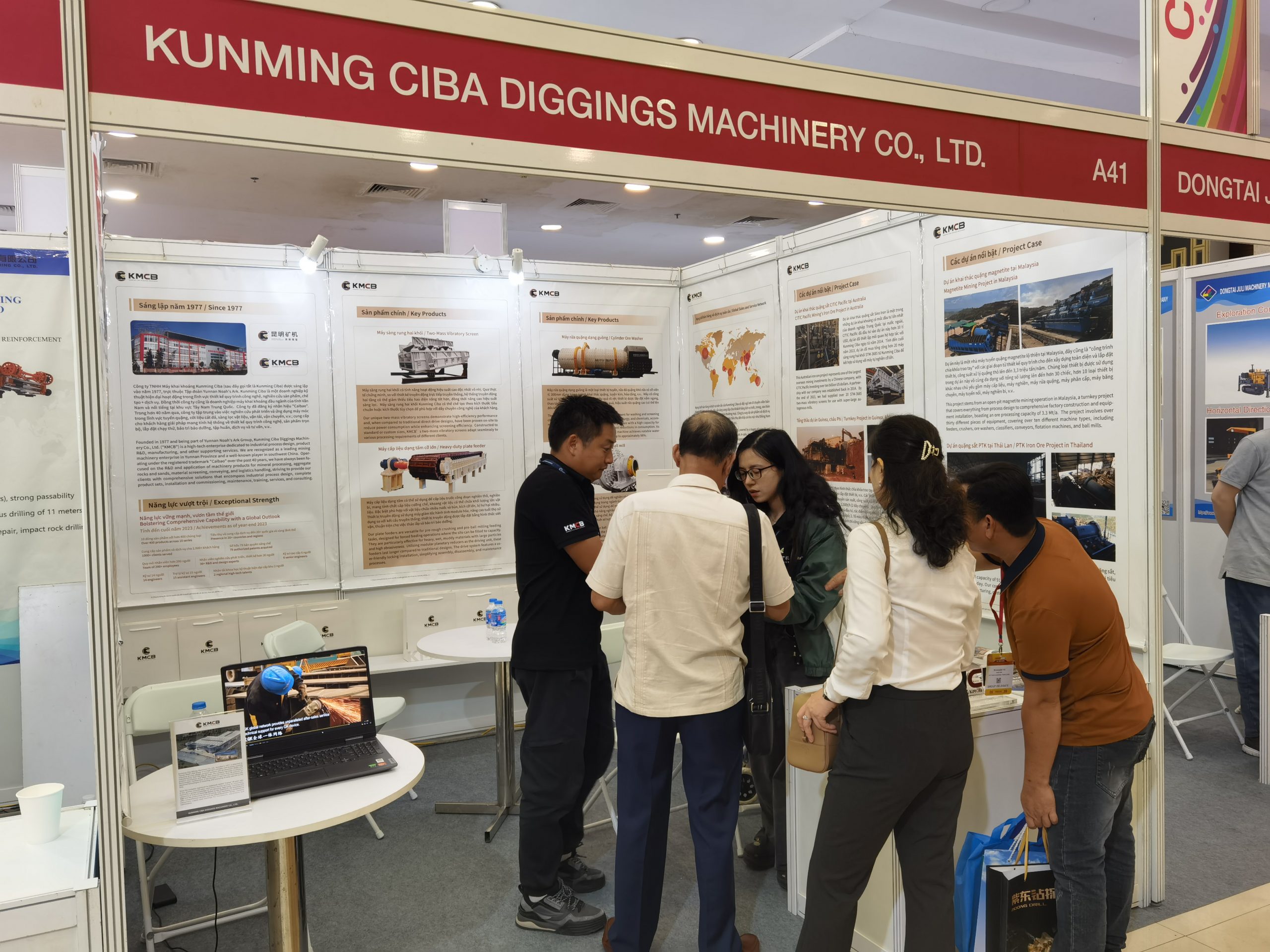 From April 24th to 26th, the Vietnam International Mining Exhibition was grandly held at the Hanoi International Exhibition Center in Vietnam, which attracting numerous mining machinery enterprises from around the world to participate.This exhibition not only provides an opportunity for our company to showcase the latest products and technologies, but also becomes an important occasion to promote international cooperation and information exchange. Kunming CIBA Mining Machinery Co., Ltd. (hereinafter referred to as “Kunming Mining Machinery”) specially assigned the International Business Department to participate in this exhibition.